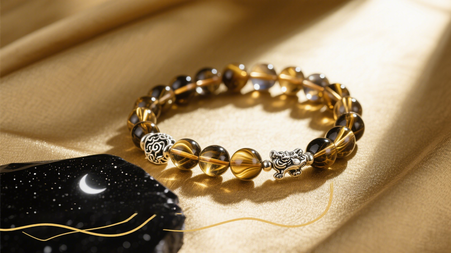 Double Eyelid Cat Long Eye Gold Obsidian Bracelet